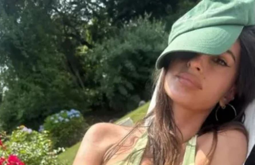 Emily Ratajkowski pozon para kamerës teksa merr rreze dielli