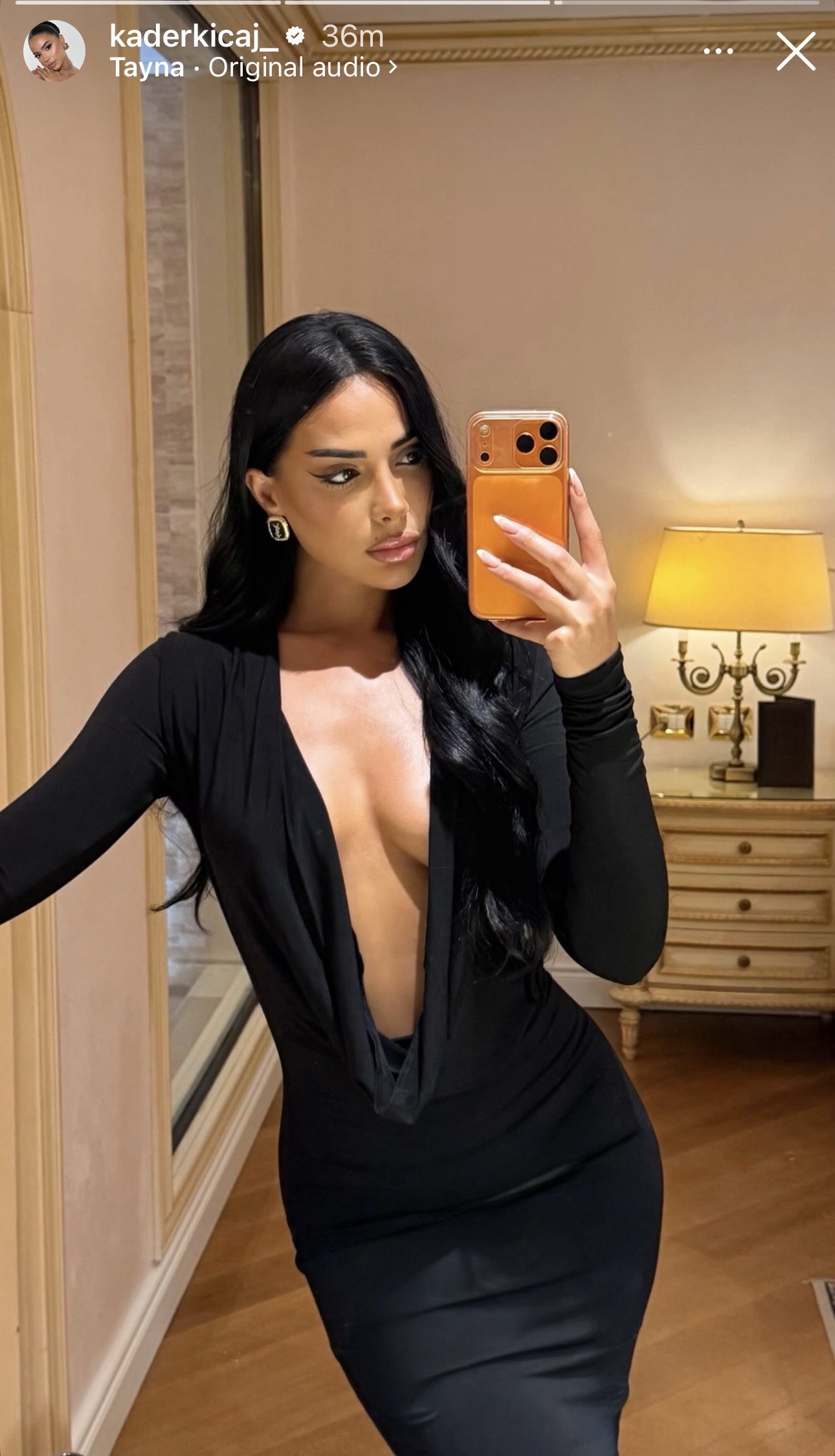 E veshur me një fustan elegant të zi, pa sutjena, Kader ka vënë në pah linjat e saj trupore, duke u shfaqur më në formë se kurrë. Pamja e saj provokuese dhe sensuale ka shkaktuar reagime të shumta, ku ndjekësit nuk kanë kursyer komplimentet.